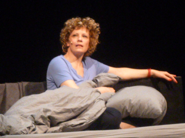 Die aus Köln stammende, aber seit Jahren in Hamburg lebende Schauspielerin gestaltet das Treiben im, auf und neben dem Bett in einer rasenden Mischung aus Theater, Kabarett, Comedy und dann singt sie auch noch. Großartig, wie Anna Schäfer leichtfüßig zwischen den Charakteren und Stimmungen wechselt, die von brachial zotig bis zart poetisch reichen.